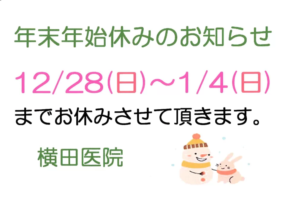 年末年始休みのお知らせ
